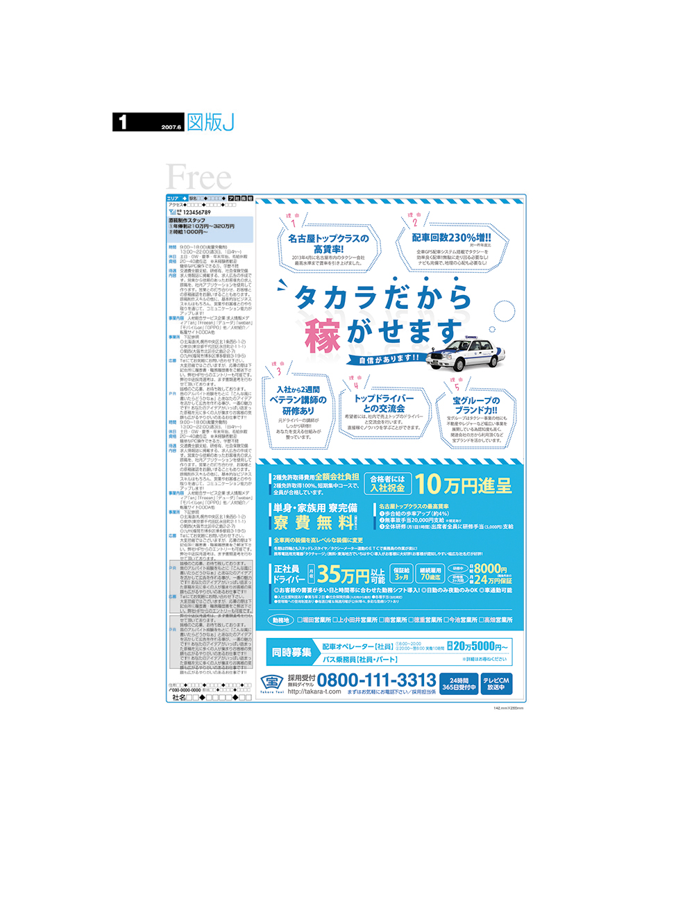 - タクシー運転手の求人募集を目的とした広告デザイン。幅広い応募層にアプローチできるよう、信頼感や働きやすさが伝わるデザインを意識しました。