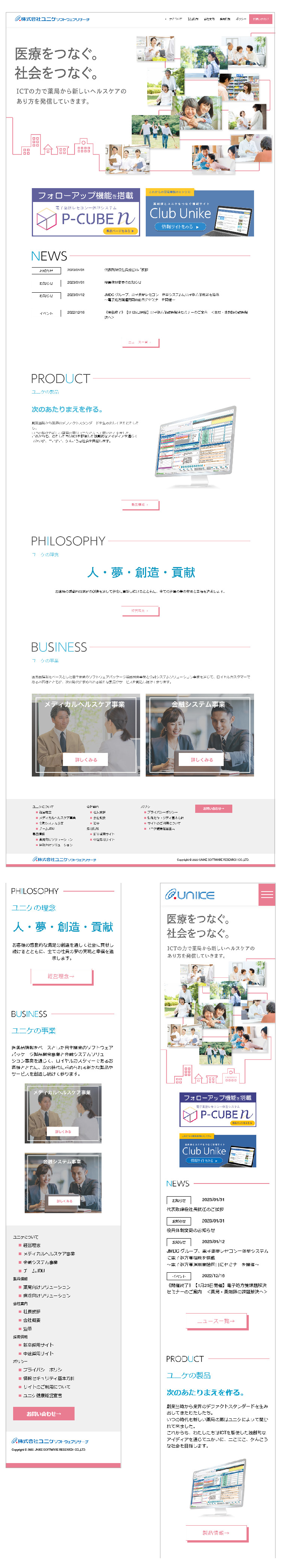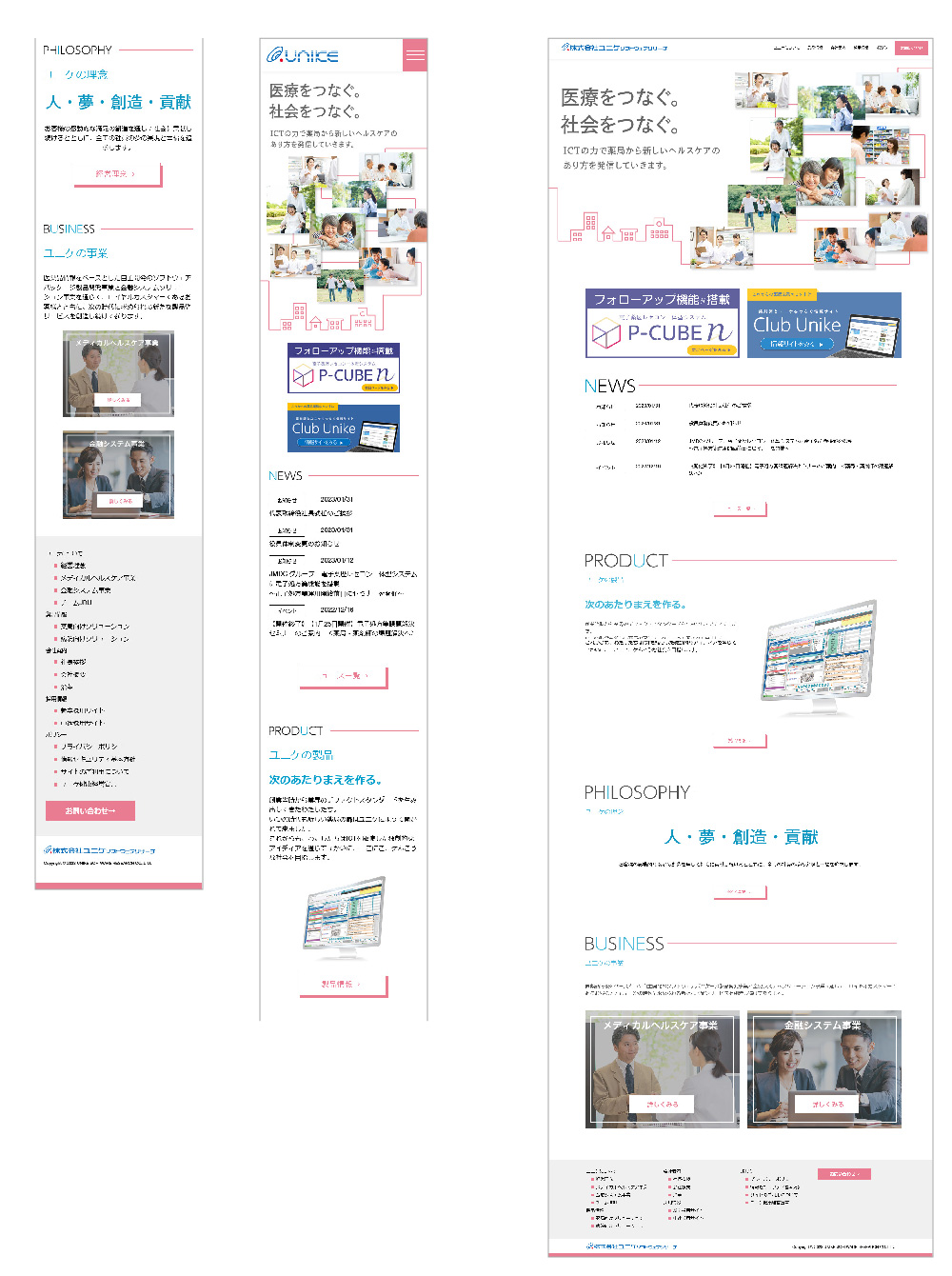 - 限られた時間内で優先度の高いページを効率的に制作。デザイン・コーディングを一貫して担当することで、スピーディにサイトを公開可能にした。結果、クライアントは短期間で必要な情報をWeb上に展開でき、後続の下層ページ制作にもスムーズにつなげられた。