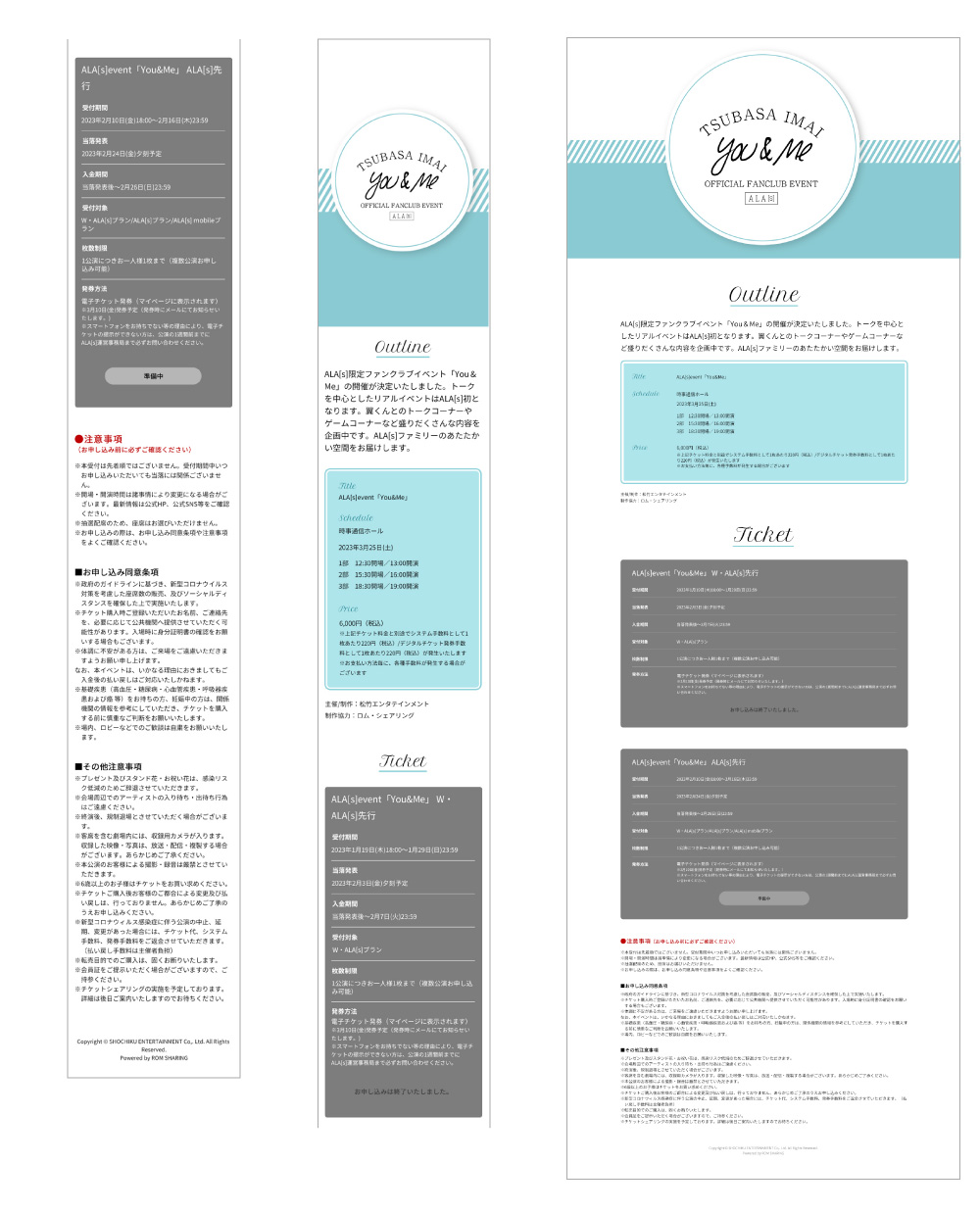 - チケット販売直前のタイミングで、イベント情報を迅速に公開する特設サイトを制作。限られた期間で確実に公開できることを最優先に対応。